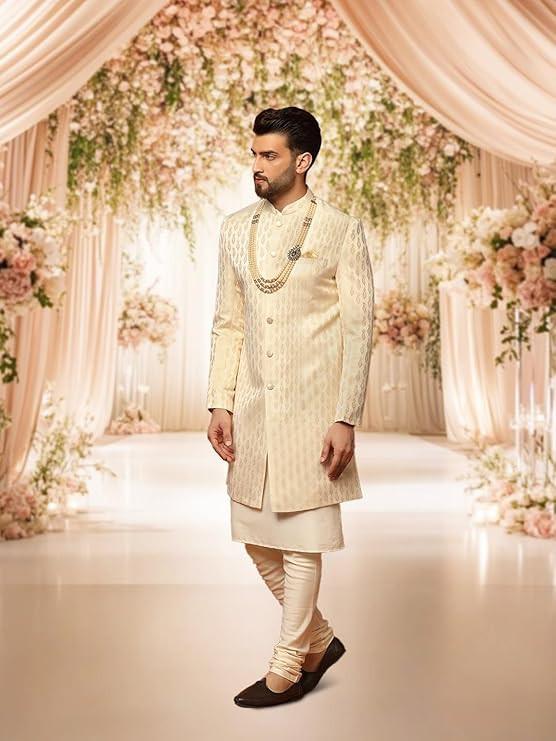• OCCASION-READY – Dry clean recommended. Suitable for groom wear, Diwali parties, Eid, and gifting. Accessories like turban and footwear not included.