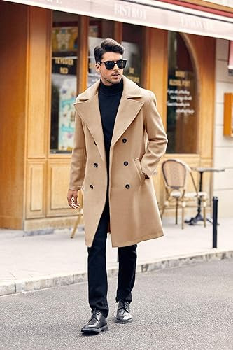 • Features: Winter overcoats for men, designed with double-breasted, notch lapel collar and two slant side pockets, back adopt streamline design, long regular fit trench coat wool jacket coat, long sleeve