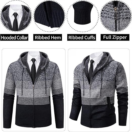 Mylldey Mens Hoodies Knit Sweater, Full Zip Fleece Lined Cardigan Sweaters Casual Regular Fit Knit Hooded Men Sweater Jacket.
