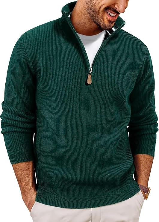 • FEATURES : This Quarter zip sweater for men is designed with ribbed cuffs and hem, quarter zip sweaters design, High neck polo collar sweater is stylish and casual. Suitable for autumn and winter.