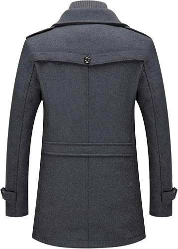 PRIJOUHE Men's Wool Coat Winter Coat Slim Medium Long Coats Overcoat Male